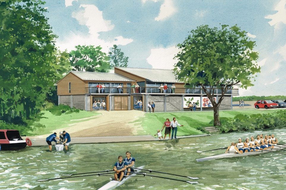 The proposed 'clubhouse' is two storeys with floodable boat storage and changing facilities on the ground floor and a function room, gym, training room, office and additional changing and W.C's at first floor. Ground floor walls are part transparent, upper walls in timber cladding, a continuous balcony has been incorporated to the riverside elevation offering superb views over the Thames.