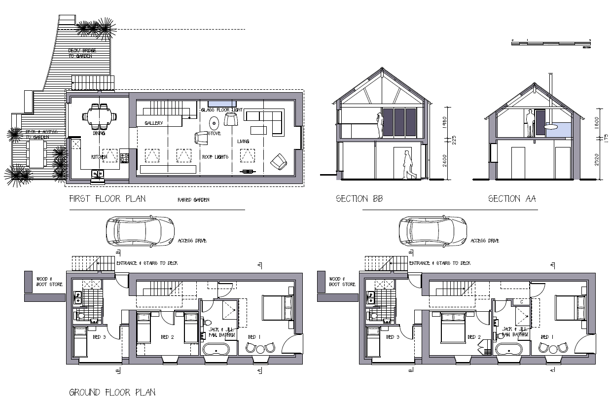 A derelict garage has been transformed into a delightful two bedroom cottage by Dan Reynolds and his team at New Acre Homes Limited. A high level of energy saving has been achieved using underfloor heating and efficient building materials and methods.