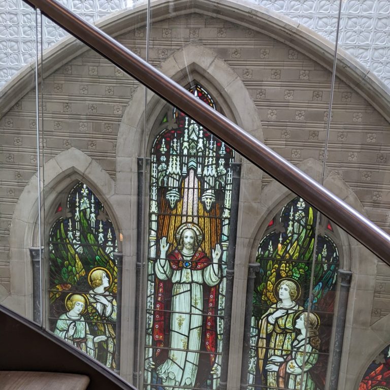 The interiors are progressing well with restoration of the existing character features complete and the insertion of floors, stairs and main elements in place. The spiral staircases with curved glass balustrading abutting the stained glass windows are looking magnificent.